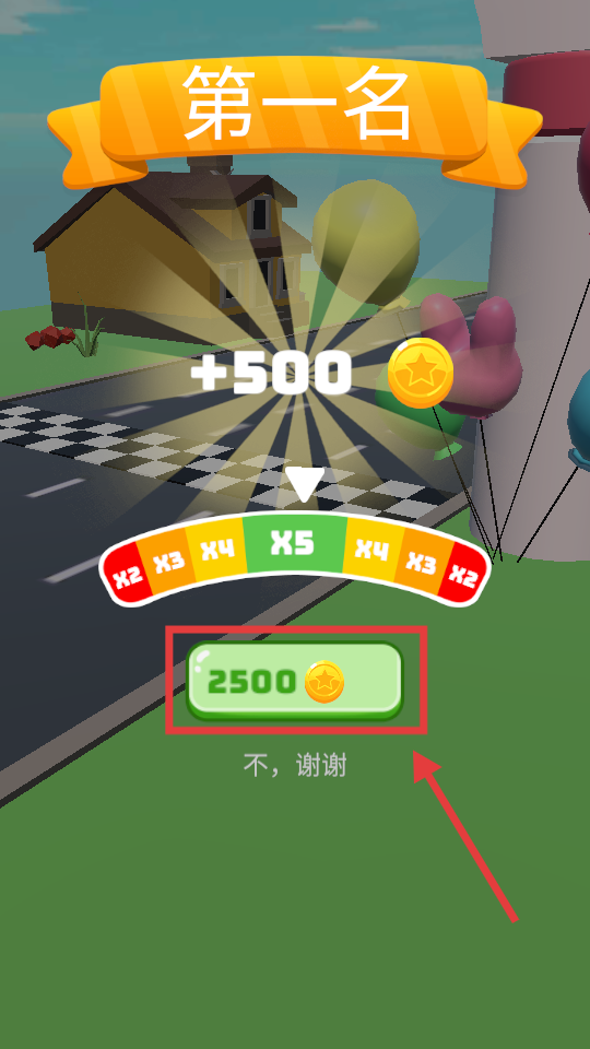 4、竞速获得【第一名】后,可点击绿色按钮领取【2500-金币】奖励,或选“不,谢谢”。