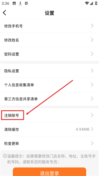 3、在【设置】页面找到【注销账号】选项,点击该选项可触发账号注销的确认弹窗,准备进行注销操作。