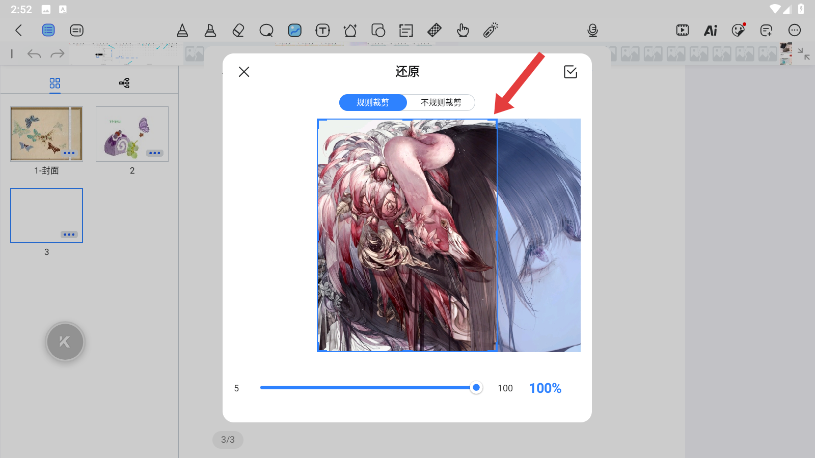 4、在剪裁界面,可选择【规则裁剪】或【不规则裁剪】,调整好剪裁范围后,就能完成图片剪裁,让笔记内容更精致呀。