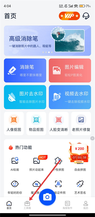 1、我们打开App后,点击【工具箱】即可进入工具集合页面呢。