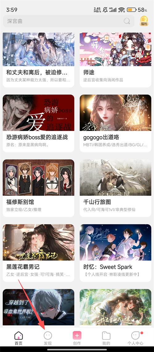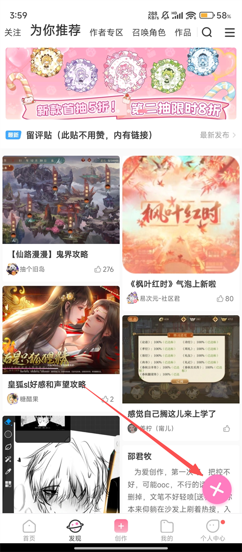 1、我们打开易次元,点击底部【发现】标签,进入发现页面,准备发布动态啦。