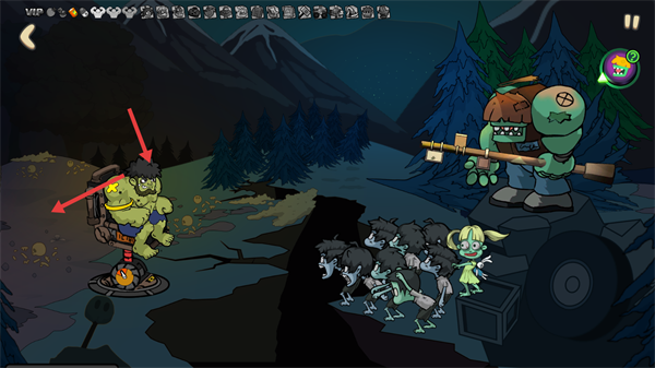 1、点击红色箭头指向的【前进】按钮进入关卡。