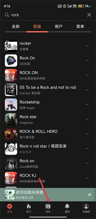 1、打开街声App,我们点击底部【动态】按钮,进入动态板块,这里能查看关注的音乐人动态哦。