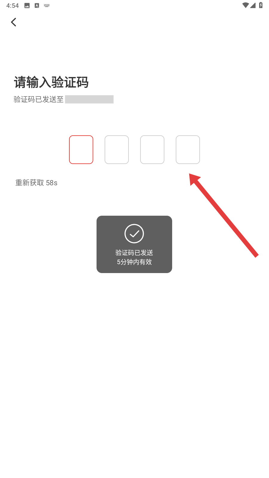 3、在验证码输入页,依次输入收到的四位验证码,完成验证步骤啦。