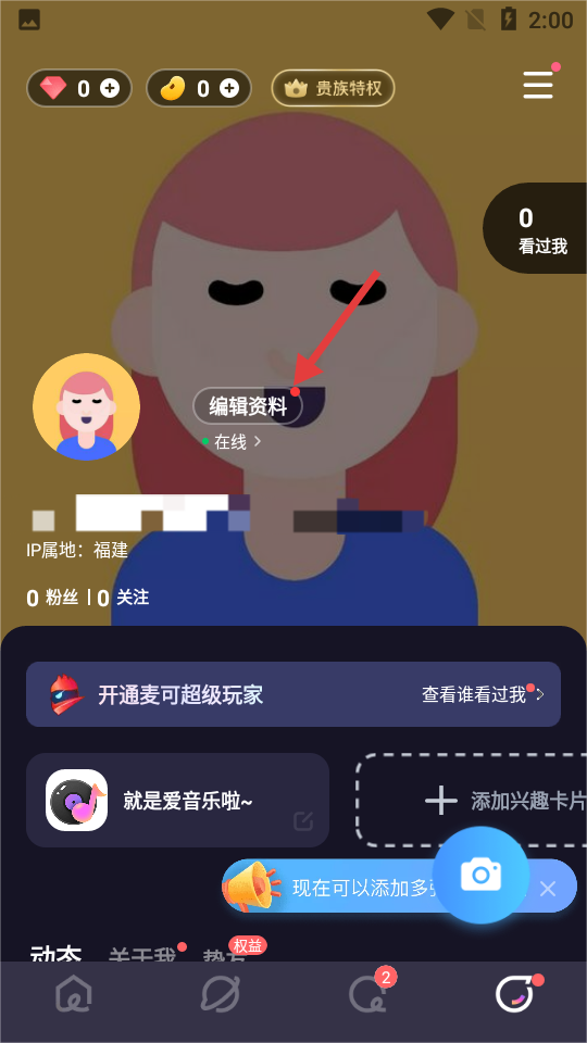 2、点击【编辑资料】。