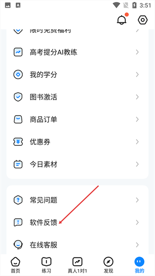2、在【我的】页面,找到并点击【软件反馈】选项。