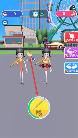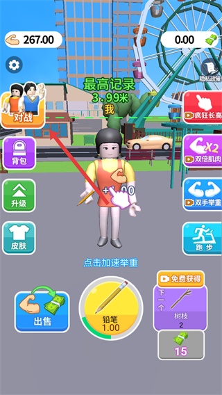 3、对战过程中点击底部的举重道具,快速积累肌肉数值,提升自身对战进度。