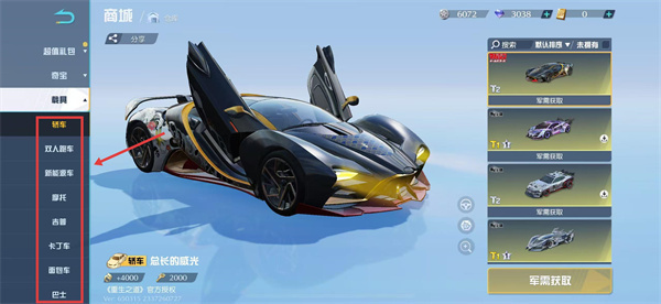 3、载具分类包含【轿车】【双人跑车】等多种类型,可根据喜好选择载具类型。