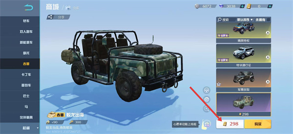 2、在商城中选择【载具】分类,可为游戏内移动工具选择个性化皮肤。