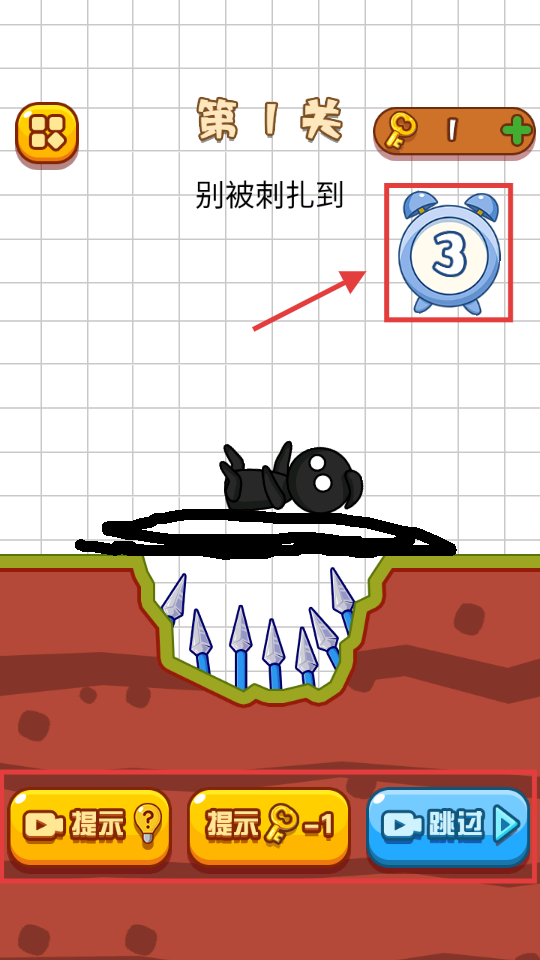 3、画好路径后等待【倒计时-3秒】结束,角色会沿路径安全通过尖刺区域。