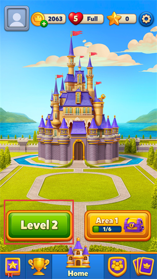 2、进入城堡主场景后,点击绿色的【Level2】按钮,就能开启第二关的挑战,继续游戏进程。