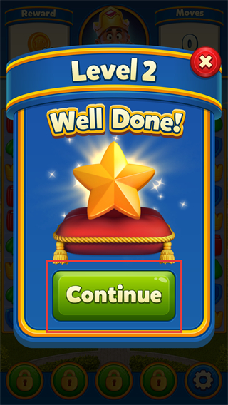 4、通关后出现【WellDone!】界面,点击绿色【Continue】按钮继续游戏。