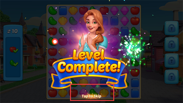 4、关卡完成后点击TaptoSkip跳过结算动画,快速进入下一关的挑战或返回主界面。