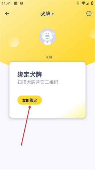 2、在我的界面点击立即绑定。在定位页面点击【扫码添加定位器】,扫描宠物“大牌”背面的二维码,完成大牌绑定。
