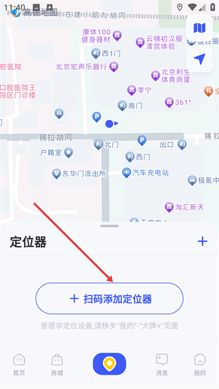 4、点击扫码添加定位器。