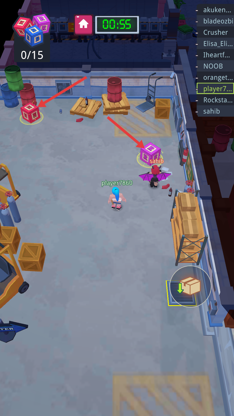 4、将收集的积木搬运到指定区域,完成收集任务,注意避开蓝色巨人的追捕。