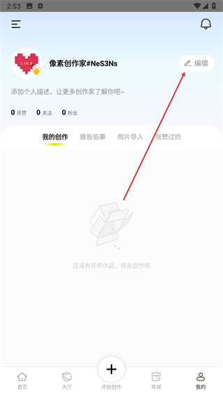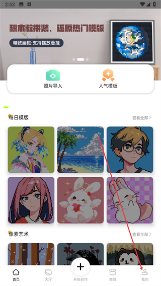 1、打开像素创作家软件,点击底部我的选项进入个人页面。