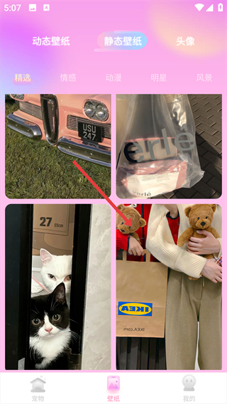 1、点击底部【壁纸】选项,切换至壁纸页面。