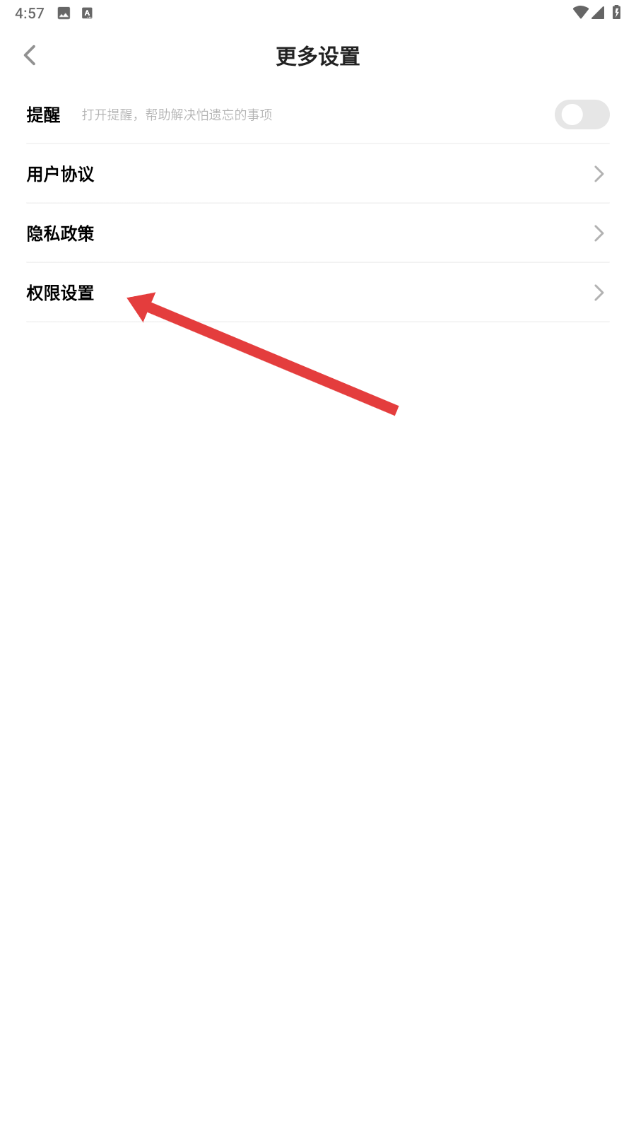 3、进入【更多设置】后,点击【权限设置】,就能看到各类权限的列表啦。
