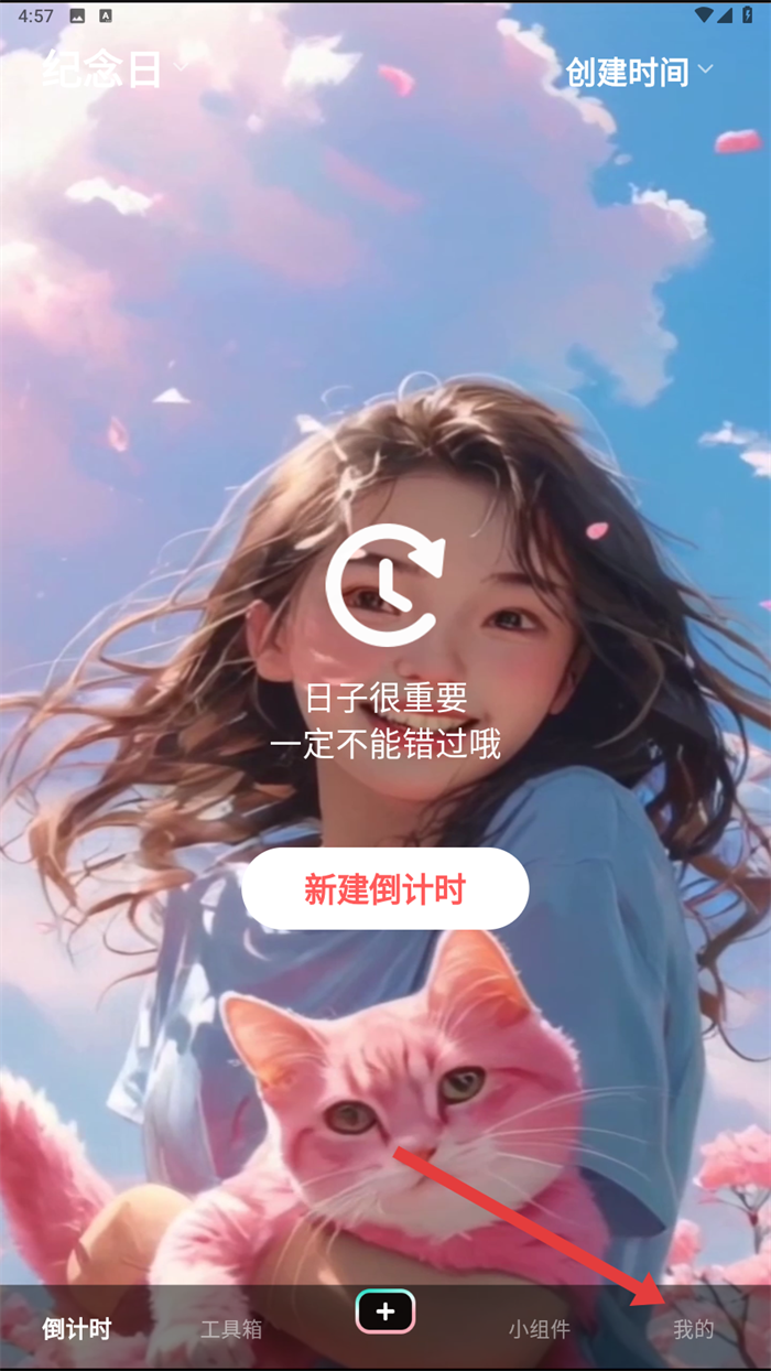 1、我们打开一古倒计时,点击右下角【我的】,开始设置权限的操作啦。