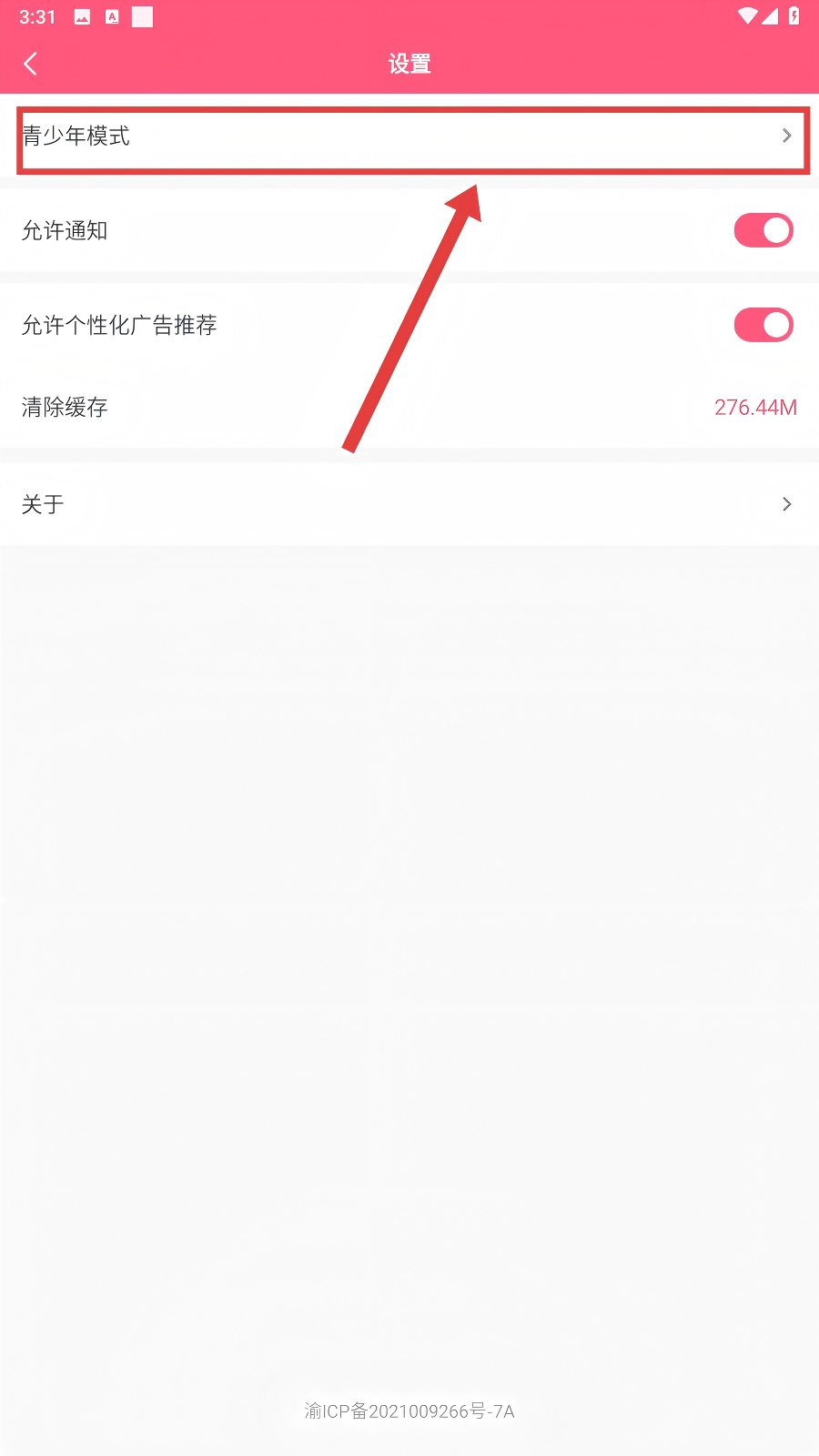 3、在设置页面里,咱们找到【青少年模式】选项,点击它就能进入相关设置界面啦。