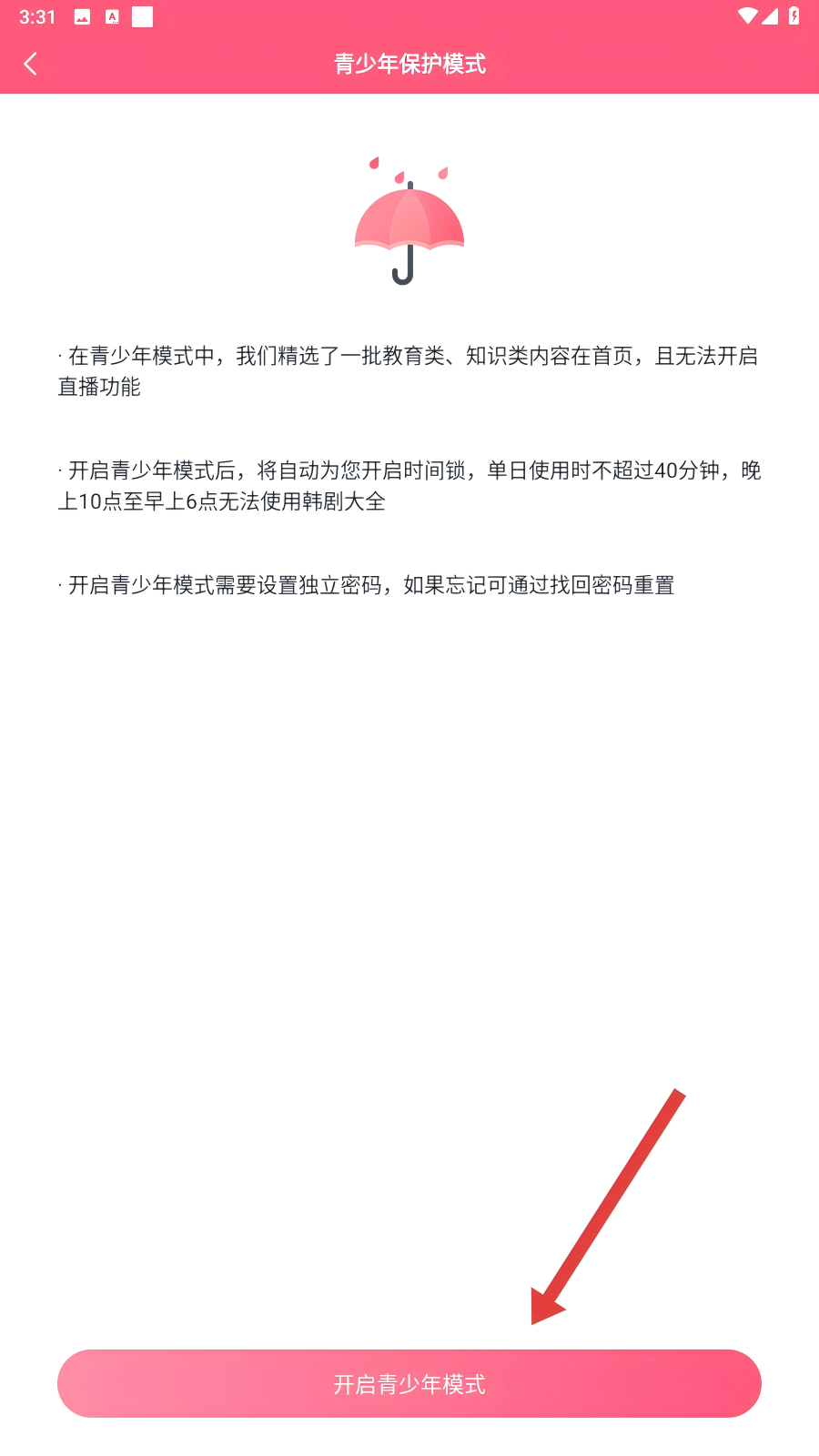 4、进入青少年模式设置界面后,点击【开启青少年模式】按钮,这样就成功开启该模式啦。