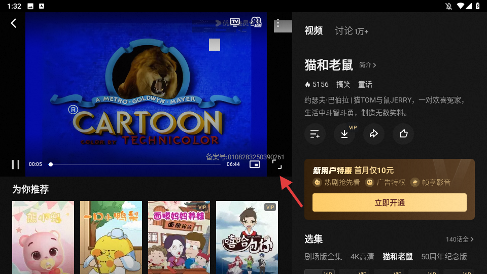 2、进入视频播放界面后,点击视频右下角全屏按钮,切换至全屏播放模式。