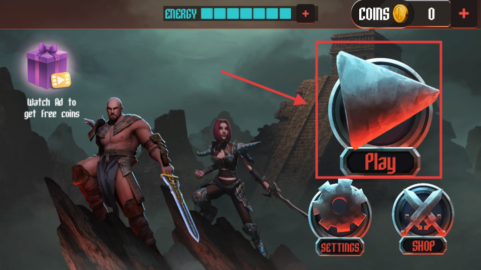 1、点击【Play】按钮进入游戏,也可通过【Watch-Ad-to-get-free-coins】的紫色礼盒看广告获取免费货币。