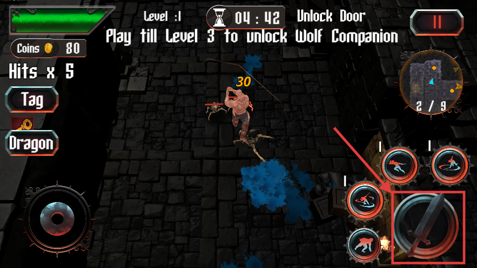 2、战斗时点击右下角【Sword】图标攻击怪物,留意【Hits-x-5】连击数来提升伤害输出。