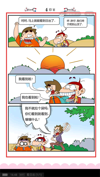 4、进入漫画阅读页,即可查看【阿U-看日出】的内容,浏览该四格漫画的剧情画面。