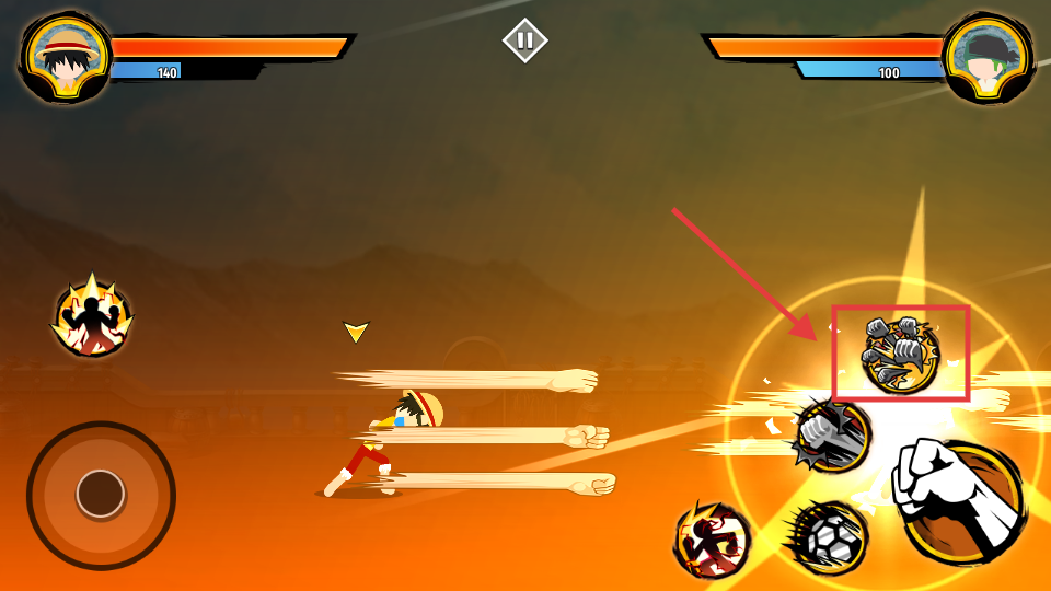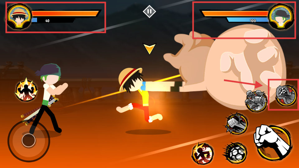 3、敌方攻击时触发【Giant-Fist】技能反击,保持血量压制,避免被敌方【Zoro】击败。