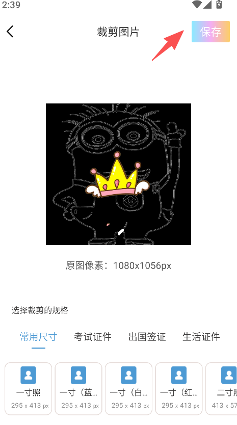 3、裁剪功能支持多规格选择,含常用尺寸考试证件出国签证等分类,适配不同证件照的尺寸标准,满足各类场景下的证件照制作需求。