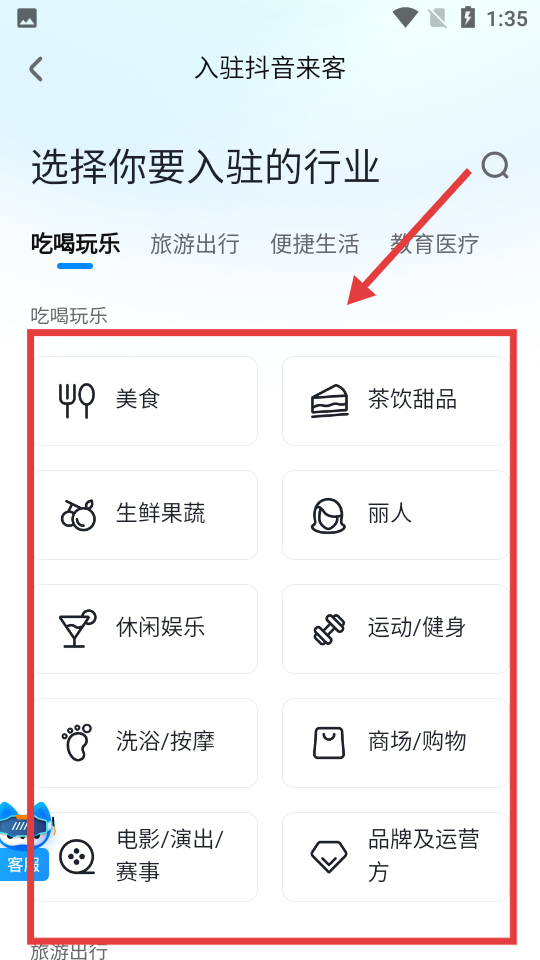 1、选择要入驻的行业,如【美食】【茶饮甜品】等分类。