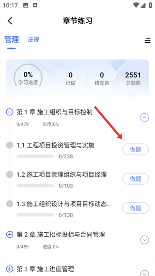 2、选择目标章节下的对应小节,点击右侧的“做题”按钮,进入作答页面。