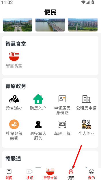 3、进入便民服务栏目,可使用智慧食堂等功能,方便完成日常生活事务查询与操作。