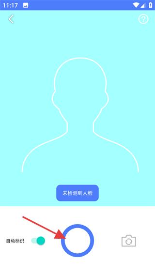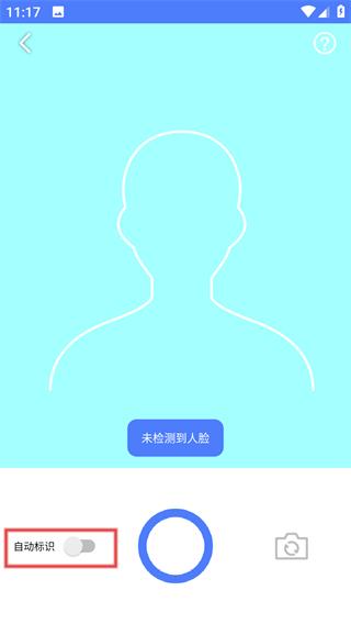 3、在拍摄界面开启【自动标识】功能,按提示完成人脸的定位与拍摄。
