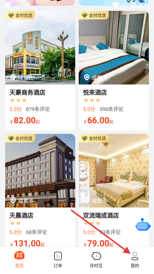 5、点击大酒店,查看个人所存下的时长,是否达标,然后免费兑换入住机会