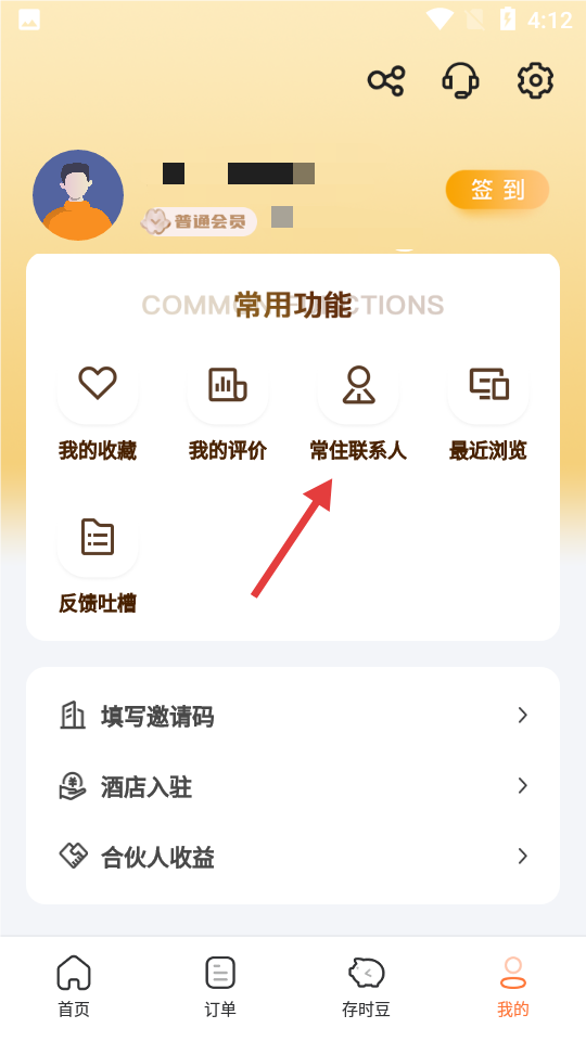 2、在个人页面,点击【常住联系人】。