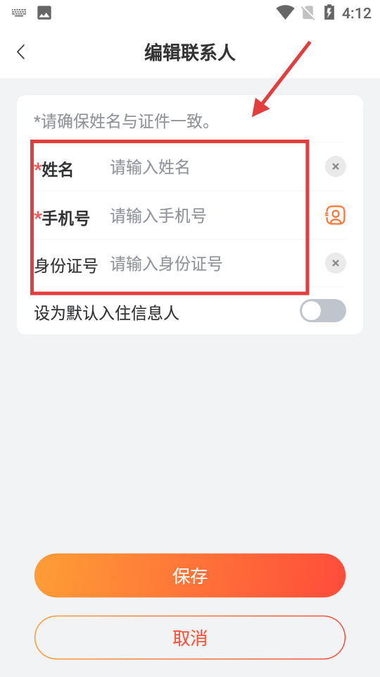 4、填写姓名、手机号、身份证号等信息,点击【保存】,完成添加操作。