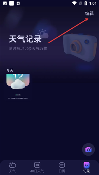 2、在天气记录页面,点击右上角【编辑】按钮。