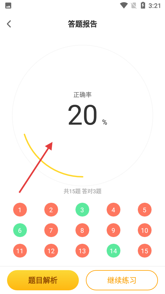 3、完成所有题目作答后,点击【交卷并查看结果】,进入答题报告页面。