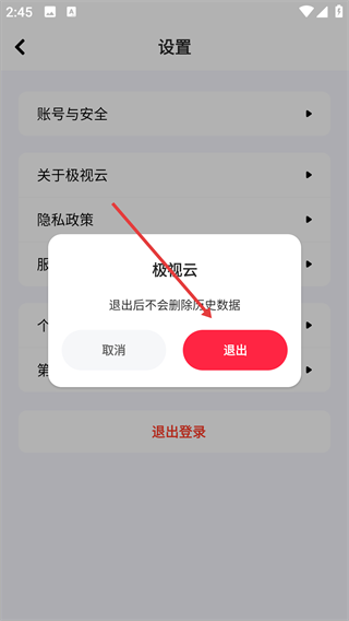 4、在确认弹窗内,点击“退出”按钮,完成账号的退出登录操作。