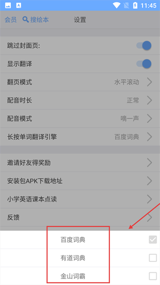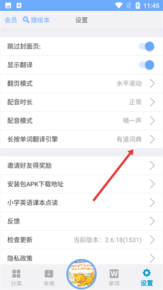 4、返回设置页面,可见【长按单词翻译引擎】已更新为选中的“有道词典”。