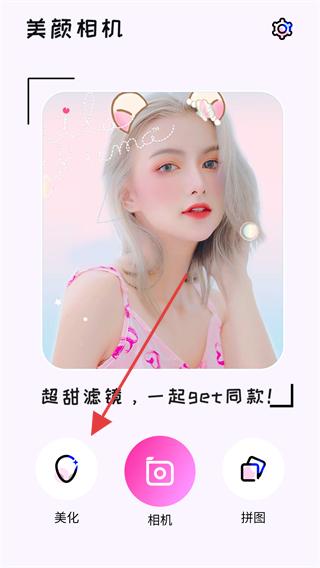 1、进入美颜相机主页,点击底部【美化】选项,进入图片选择的界面。