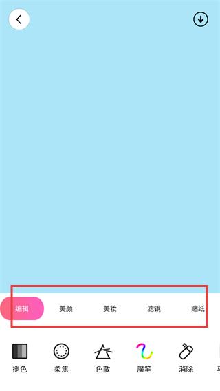 3、在编辑界面底部,选择功能(如美颜、美妆等),对图片进行美化操作。