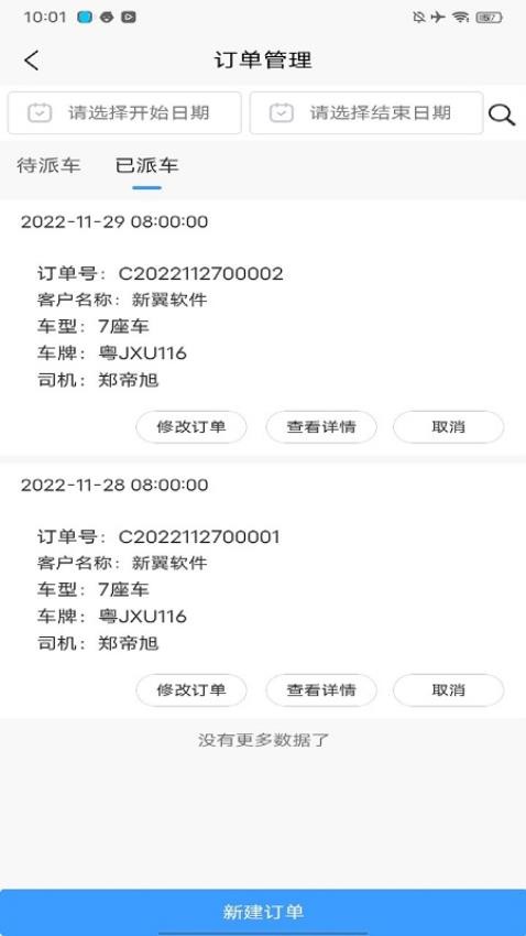 选择一个开始日期和结束日期,这样就能查看该时间段的派车记录