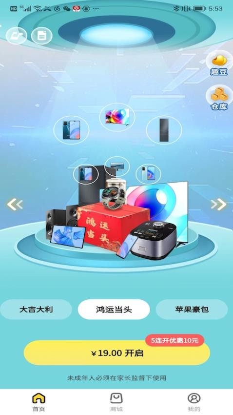 1、打开应用就可以在这里开启自己感兴趣的盲盒