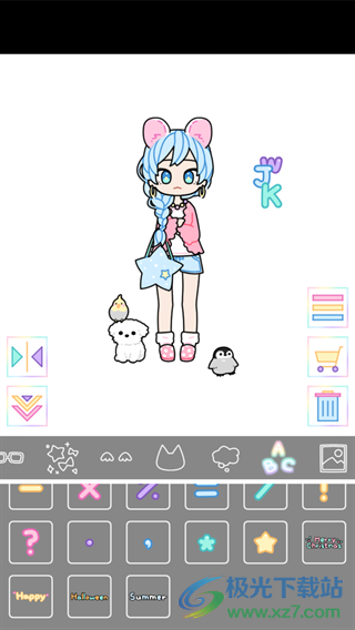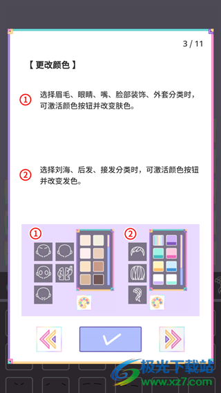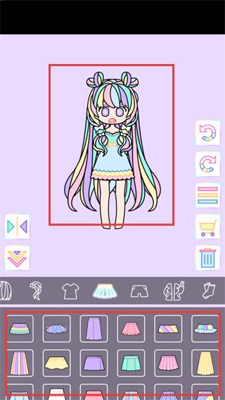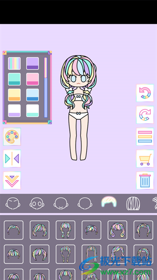 3、这里的一切都是糖果马卡龙的颜色,头发也是可修改颜色的,点击左边的调色板可以看到不同的颜色;