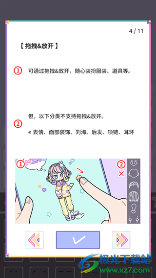 通过换装、混合搭配每件衣服及饰品,直至完成各个角色。