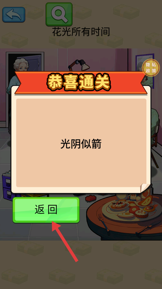 4、当屏幕显示【恭喜通关】时,点击【返回】按钮,回到关卡选择或主界面。